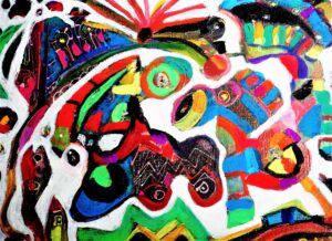 これまでたまった作品は何百枚もあります。私の絵を描く基本は組み合わせでできた作品が多いです。